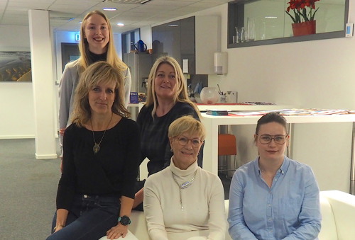 På bildet f.v: Marte Bredesen Drageset (FEMINAs kommunikasjonsleder), Colleen Delane-Skibsrud (tidligere leder av NEW), Annette Olsen (Leder av NEW), Anne-Grete Ellingsen (daglig leder i GCE NODE) og Isabelle-Louise Aabel (EU-rådgiver i GCE NODE).
