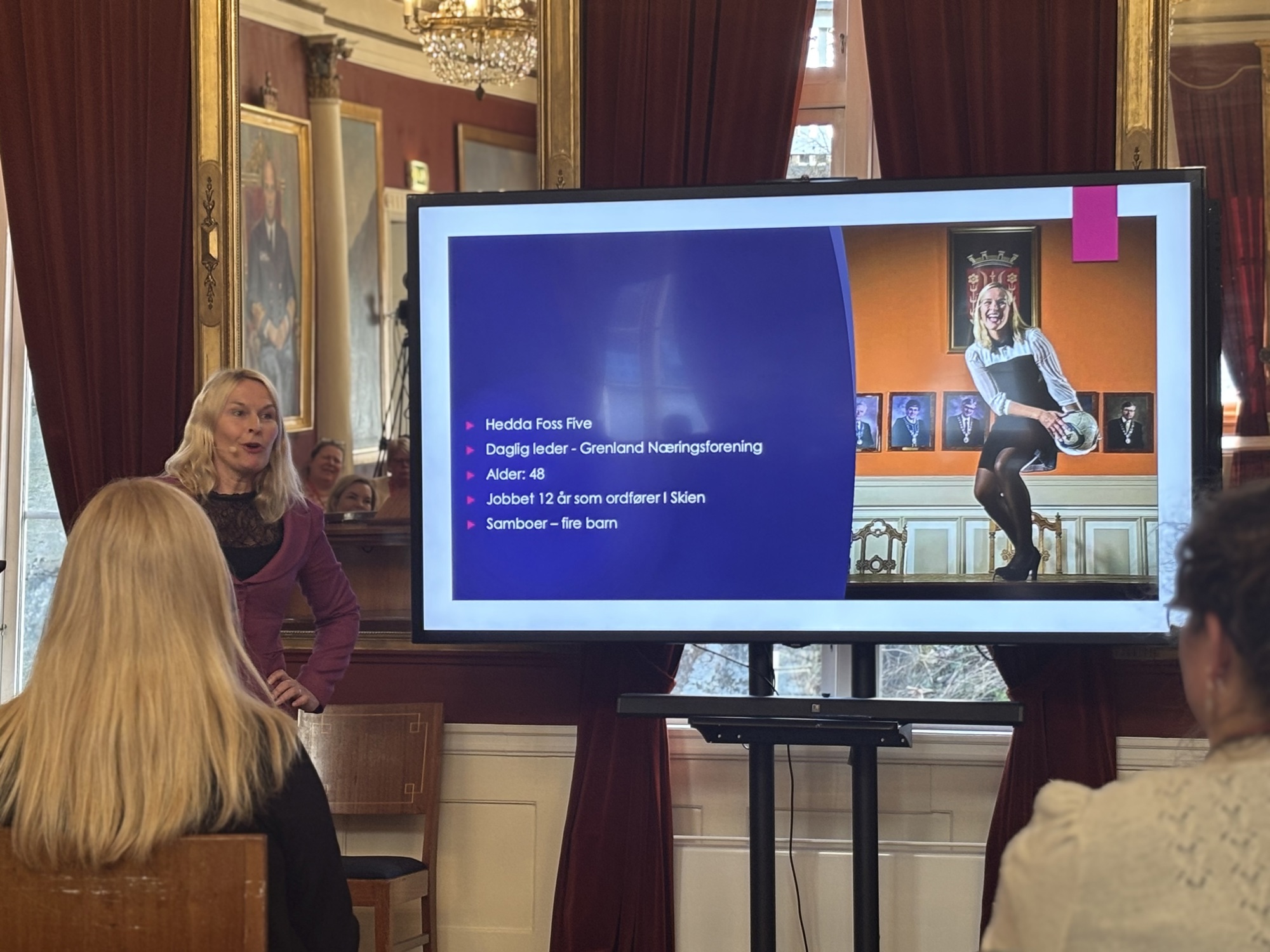 Hedda Foss Five, daglig leder i Grenland Næringsforening, snakket lidenskapelig om viktigheten av å synes for å høres. Hun oppfordret til å stå opp mot urettferdighet og understreket at noen må gå foran for å skape endring. Alle har meninger og alle kan gjøre en forskjell. Det starter med mot, å tørre å heve stemmen og ta en posisjon. Alle kan bidra litt.