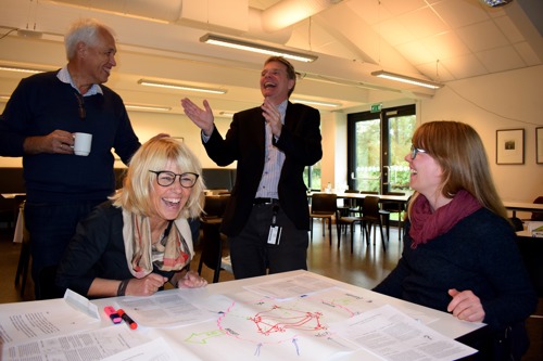 Fire grupper sitter konsentrert og jobber ved hver sine bord om en oppgave de har fått av prosjektlederen Anders Ragnar Örtenblad. Ved noen av bordene er det livlig diskusjon. Ved andre er det stille konsentrasjon. Ingen av dem vet hvorfor de er plassert i den gruppen de er i. Det skal de heller ikke få vite før de er ferdige med oppgaven. De skriver og tegner. Lager systemer og trekker linjer. Prosjektleder Örtenblad fra Universitetet i Agder går rundt og observerer og smiler for seg selv. Å få erfaring og selvinnsikt gjennom opplevelse, mener han er den beste måten å lære på.
