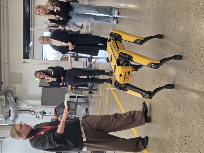 Dagen ble avsluttet med omvisning ved Karianne Ormseth på Mechatronic Innovation Lab (MIL). Her fikk deltakerne blant annet demonstrert en avansert materialsensor, se roboten SPOT i aksjon, og fikk innføring og eksempler på 3D-printing-teknologi.