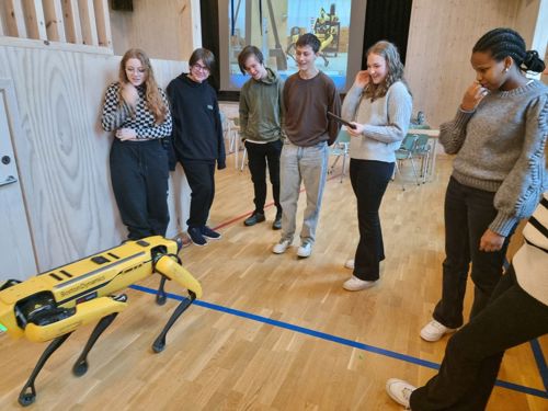 Inger-Marie Tønnesøl Solås, Morrow Batteries forteller elevene om Spot og hvordan han brukes i industrien.