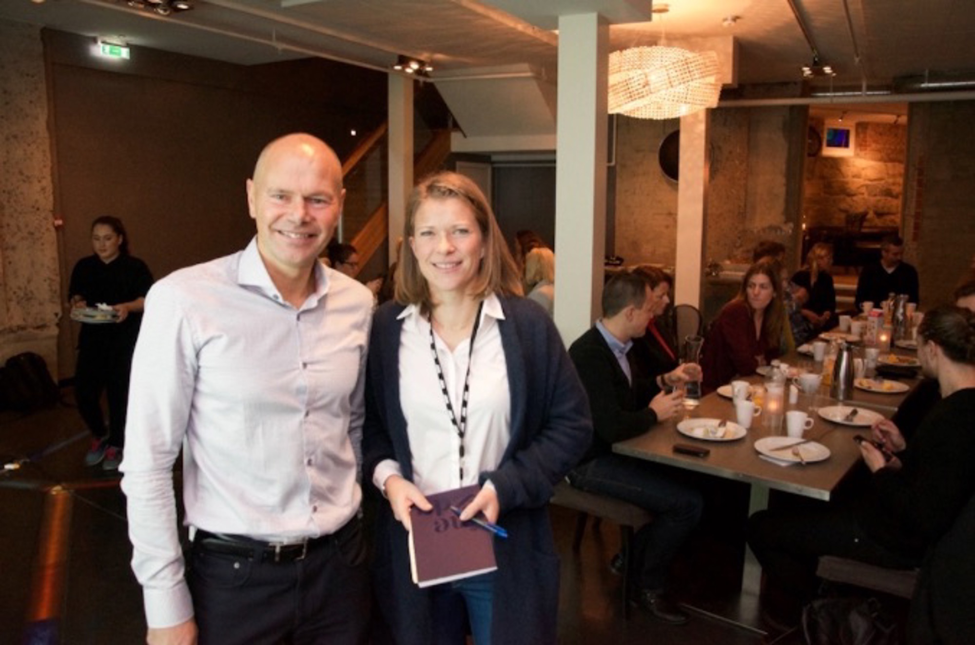 Ledende bedrifter involverer kunder mer og mer når de skaper nye produkter og tjenester, mener Tor Geir Kvinen (t.v). Her sammen med Ingrid Liv Helling i NEW i et frokostseminar om samskaping onsdag 18.november i Kristiansand.