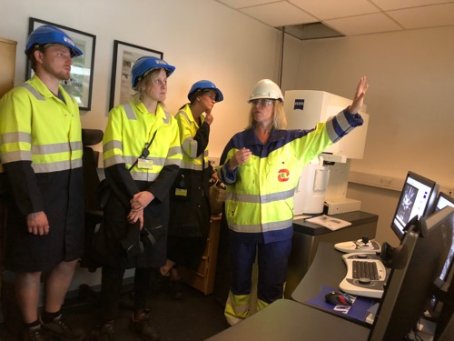 Gro Eide, leder av forskningsteknisk senter i Elkem Technology, viste studentene rundt på anlegget.